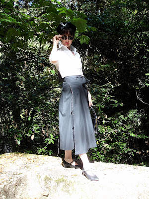 I love the high waist and long lines of this skirt. I feel very tall when I am wearing it. It was inspired by an Audrey Hepburn skirt from a back stage photo shoot about the time Sabrina came out. I am so pleased I was able to get the right geometery by just adding 5 inches to the bottom. The weight of the doubled up fabric makes it feel more 50's than 70's as well. I need to get my crinoline situation handled. It would be exciting to see this over a light one!