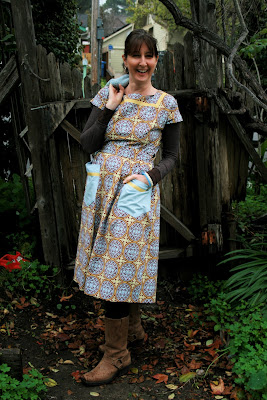 Such an adorable take on a cute pattern!! :D I've been lately contemplating using one of my 1940s patterns that I recently purchased with some modern fabric (I was thinking Amy Butler or Joel Dewberry...), and I just love how your's looks, so I think I'll have to go ahead with those plans!! hehe!