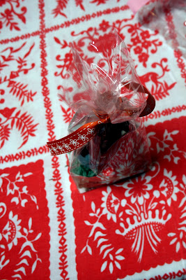 make a nice nest of crinkly crunchy paper easter grass and add the garnish to the front of the bag.